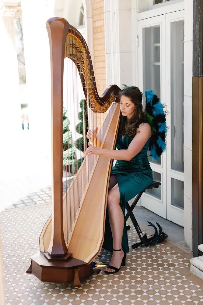 I perform on both a traditional pedal harp as well as a modern, travel-ready electric harp that brings live harp music to weddings and events in locations traditional harps can’t.